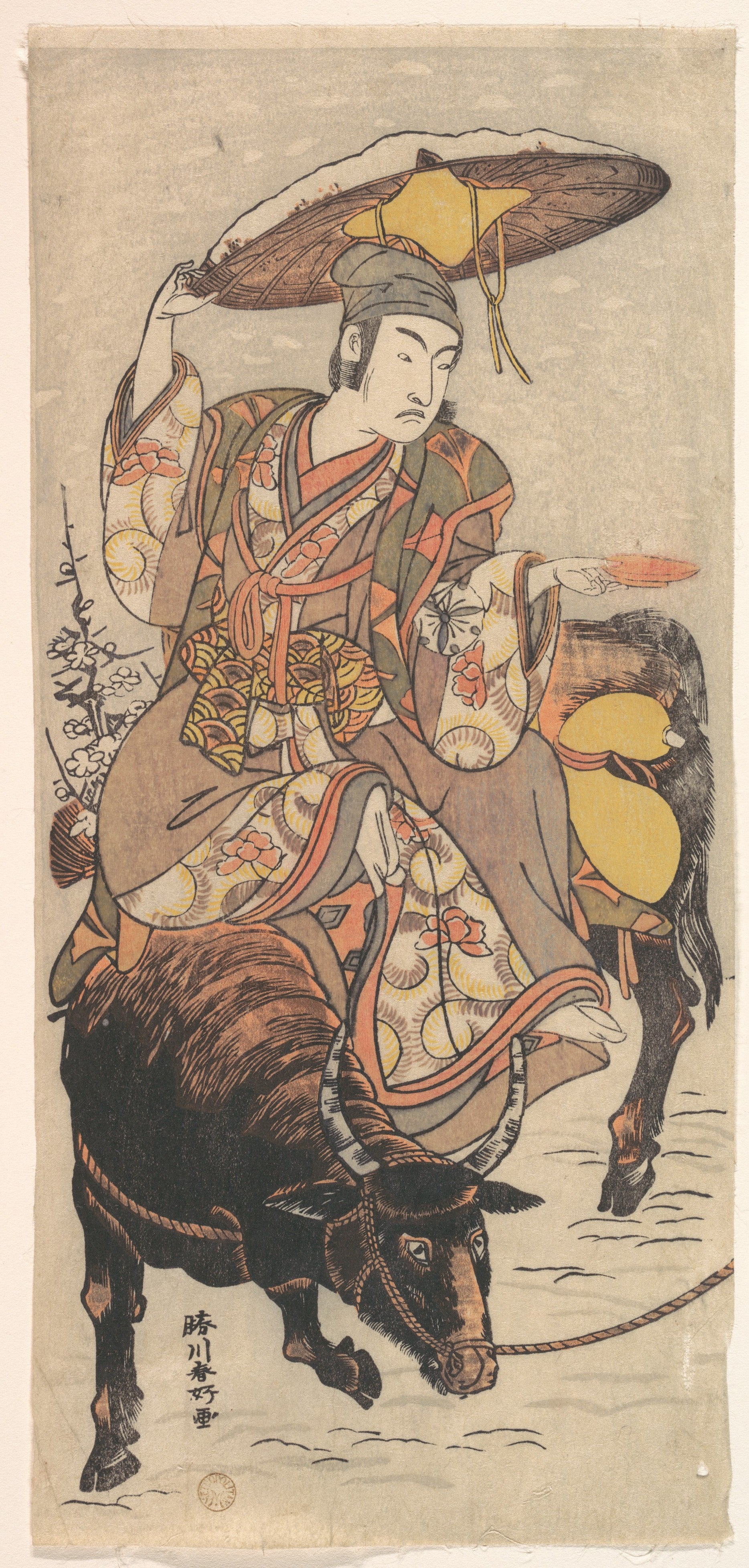 The Actor Matsumoto Koshiro IV on a Bullock in a Snowstorm